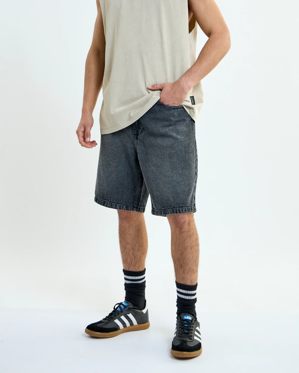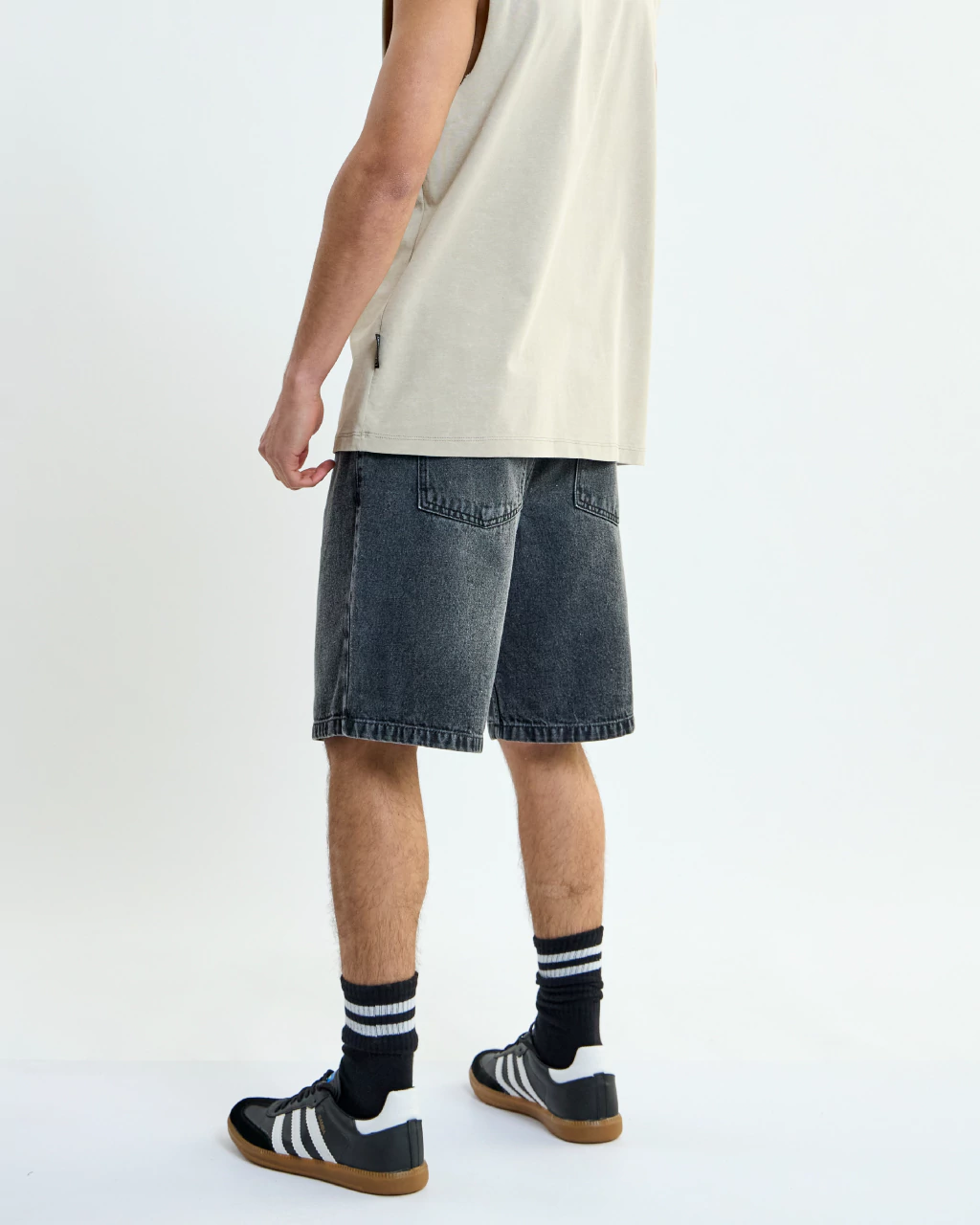 Bermuda confeccionada en denim 100% algodón, remaches metálicos, cierre YKK y cuatro bolsillos funcionales: dos delanteros y dos traseros.