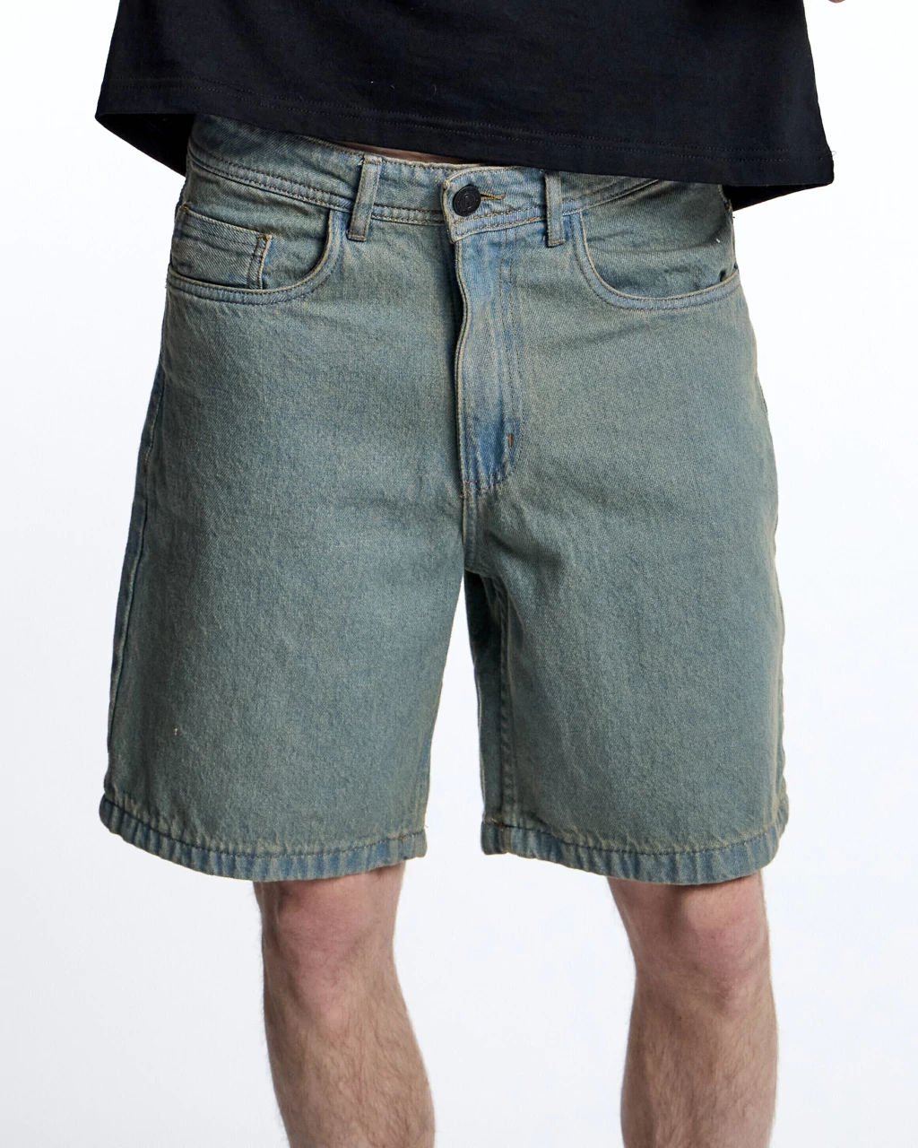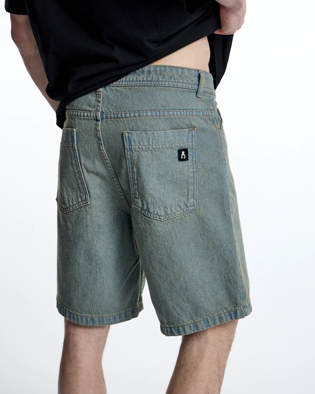 Bermuda confeccionada en denim 100% algodón, con lavado matizado que genera un efecto óxido.