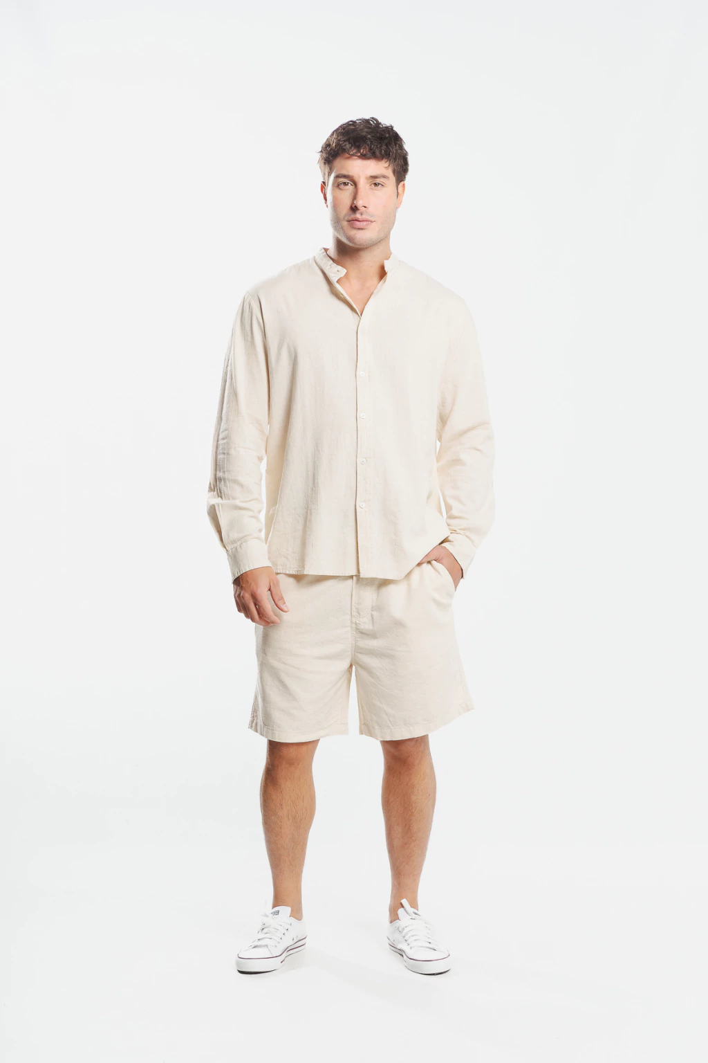 La camisa Biesanz está confeccionada en lino 100%, un tejido fresco, ligero y respirable ideal para los días cálidos. Su diseño de manga larga y cuello mao combina elegancia y comodidad, logrando un look versátil que podés usar tanto en ocasiones informales como en eventos más sofisticados.