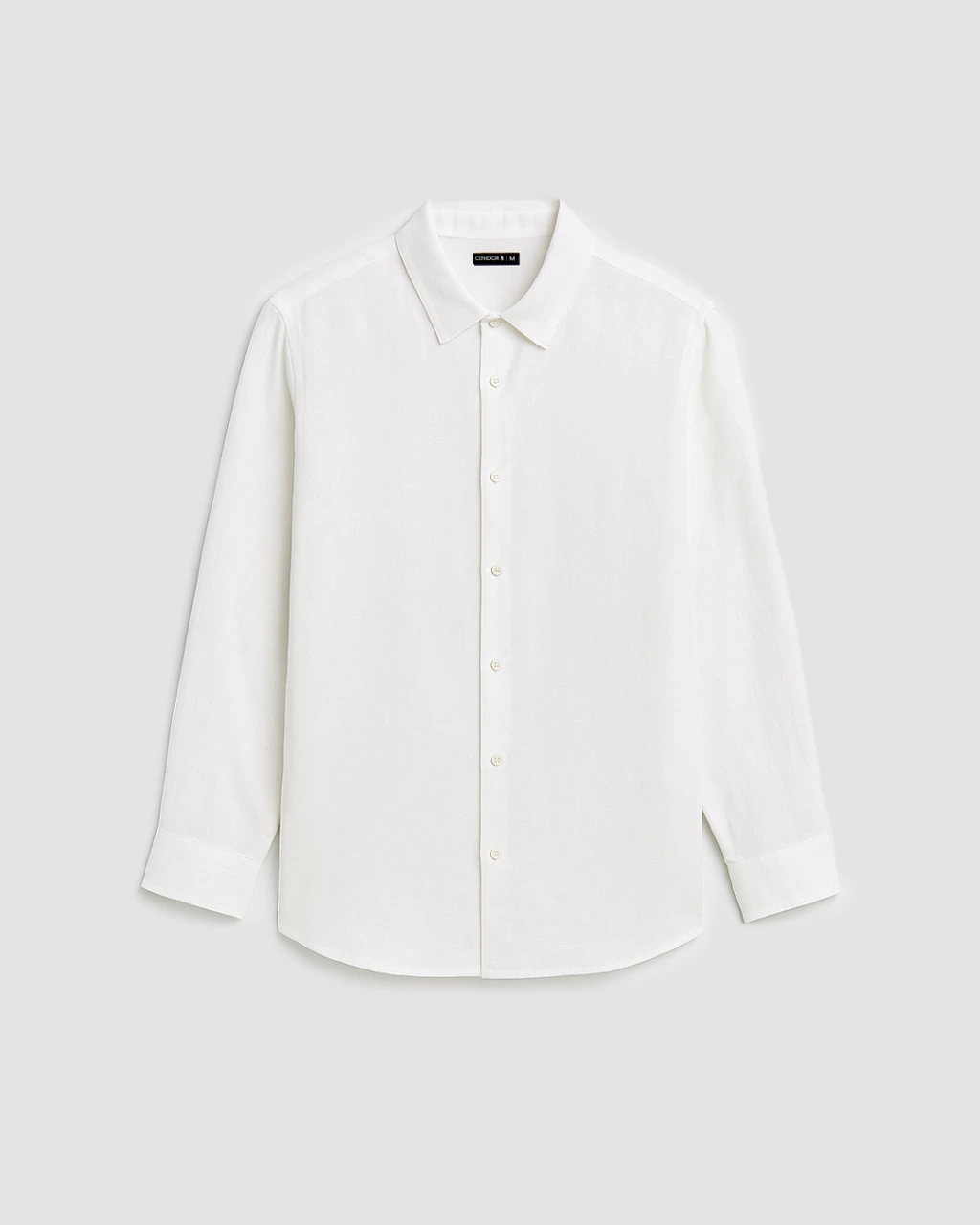 Camisa de lino de corte clásico y manga larga, con botones a tono y canesú en la espalda.
