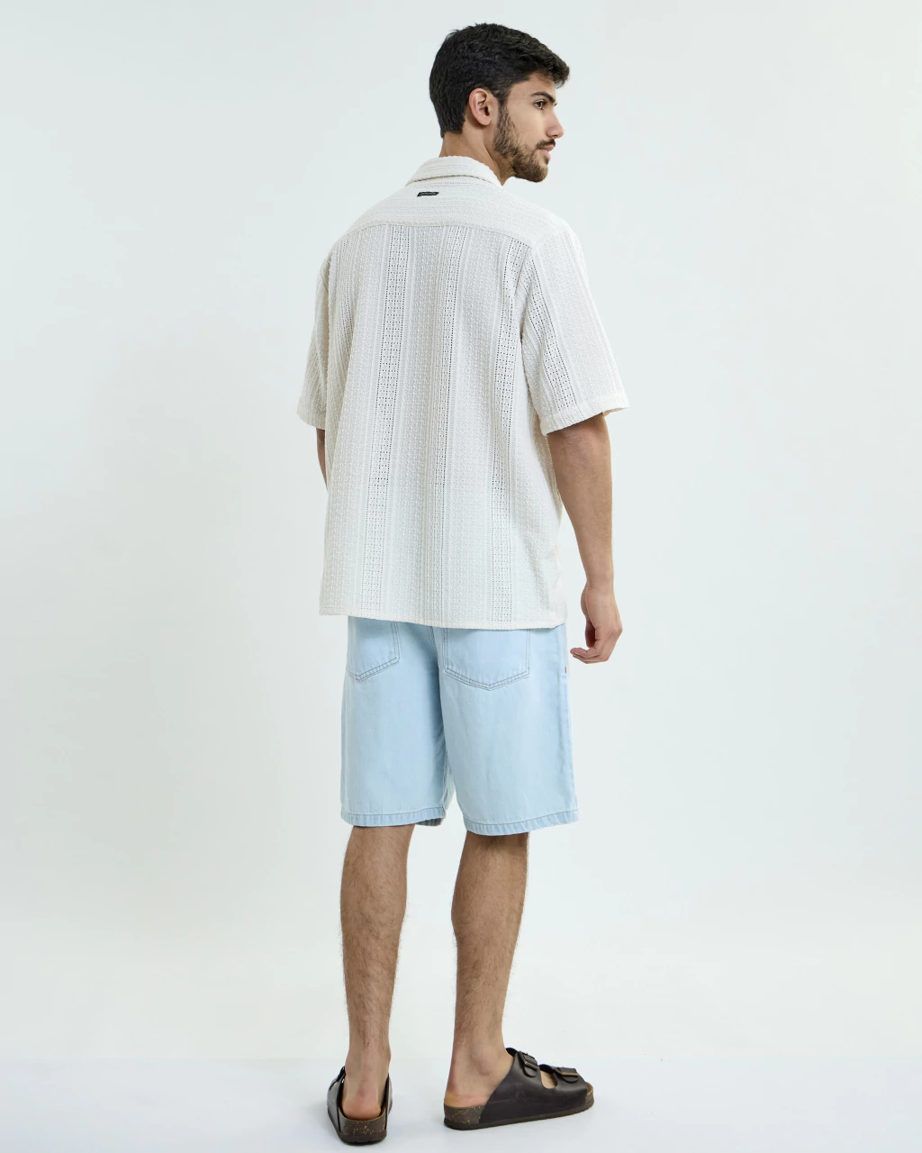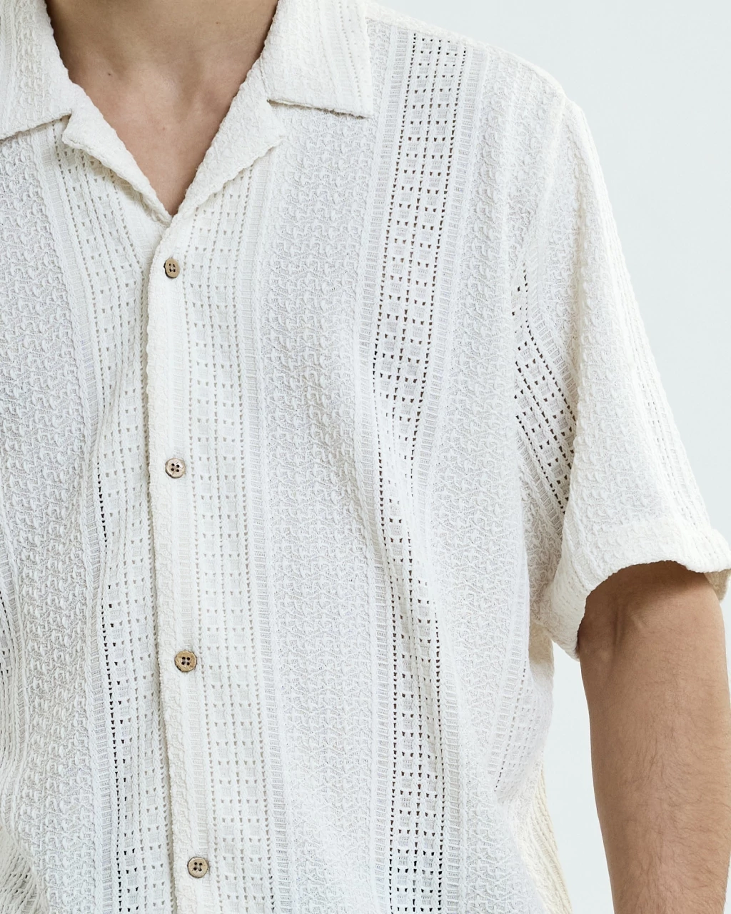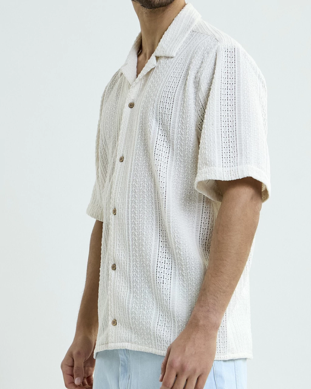 Camisa texturada de corte regular. Liviana y cómoda, con botones de coco.